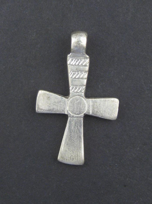 Silver Engraved Ethiopian Cross Pendant (Circle & Stripe)