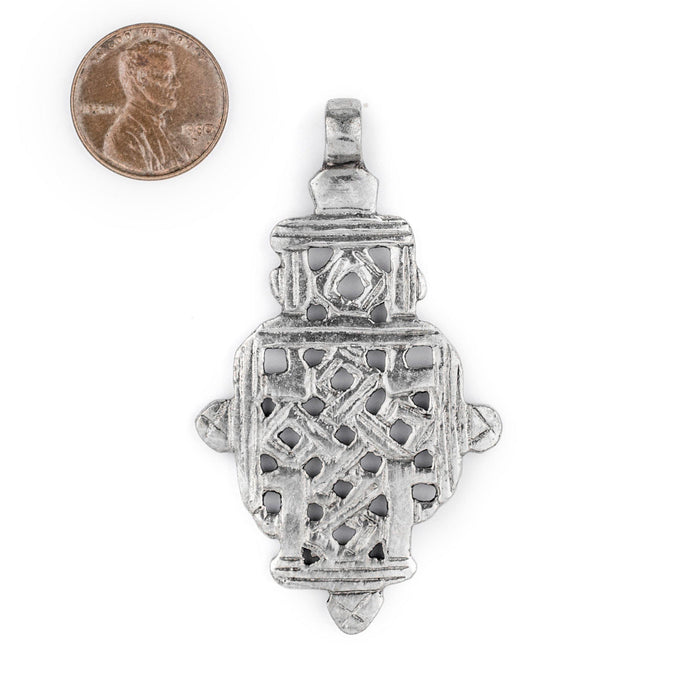 Designed in Ethiopia, this Coptic Cross pendant is intricately crafted, showcasing exquisite artistry and cultural significance. The pendant can be worn as-is, simply by running a chain through it. The design on the back of the cross is similar to what is shown on the front so these pendants are basically double-sided! This cross measures approximately 65x37mm. Each pendant is unique and may vary slightly from picture.