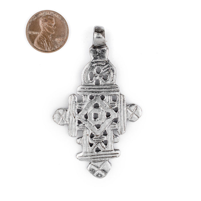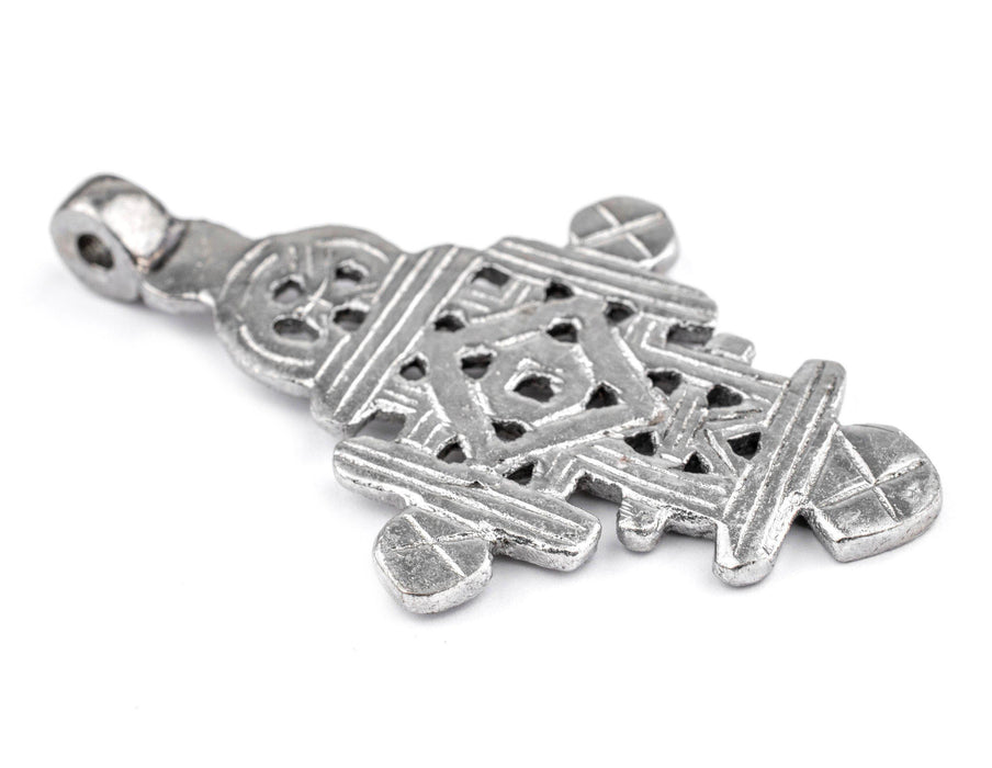 Designed in Ethiopia, this Coptic Cross pendant is intricately crafted, showcasing exquisite artistry and cultural significance. The pendant can be worn as-is, simply by running a chain through it. The design on the back of the cross is similar to what is shown on the front so these pendants are basically double-sided! This cross measures approximately 68 x 40mm. Get yours today!