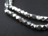 Beautiful strand of faceted silver beads. These beads have been fashioned from white metal to resemble a diamond cut. They will add a glamorous touch to your beaded jewelry! Individual beads measure 5mm across.