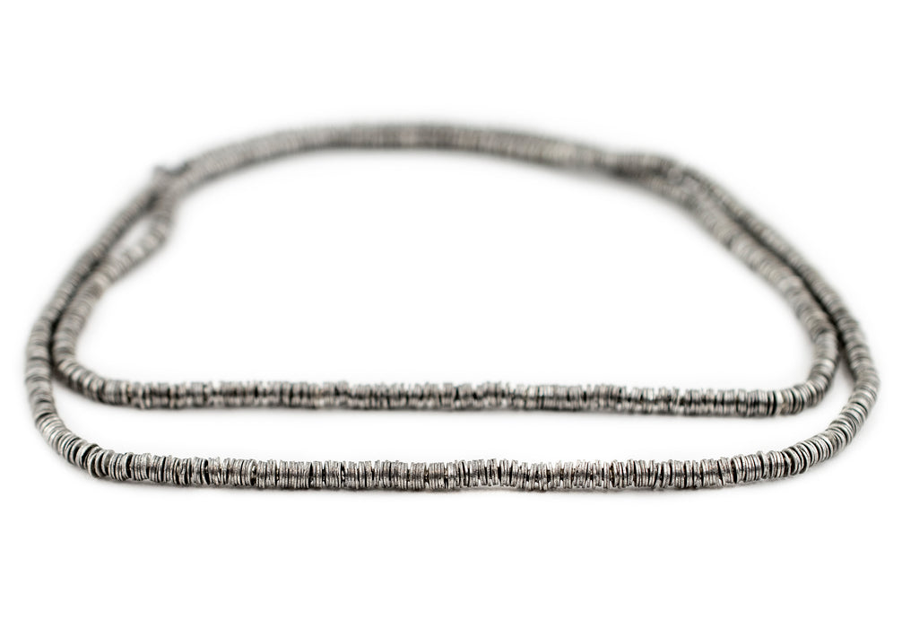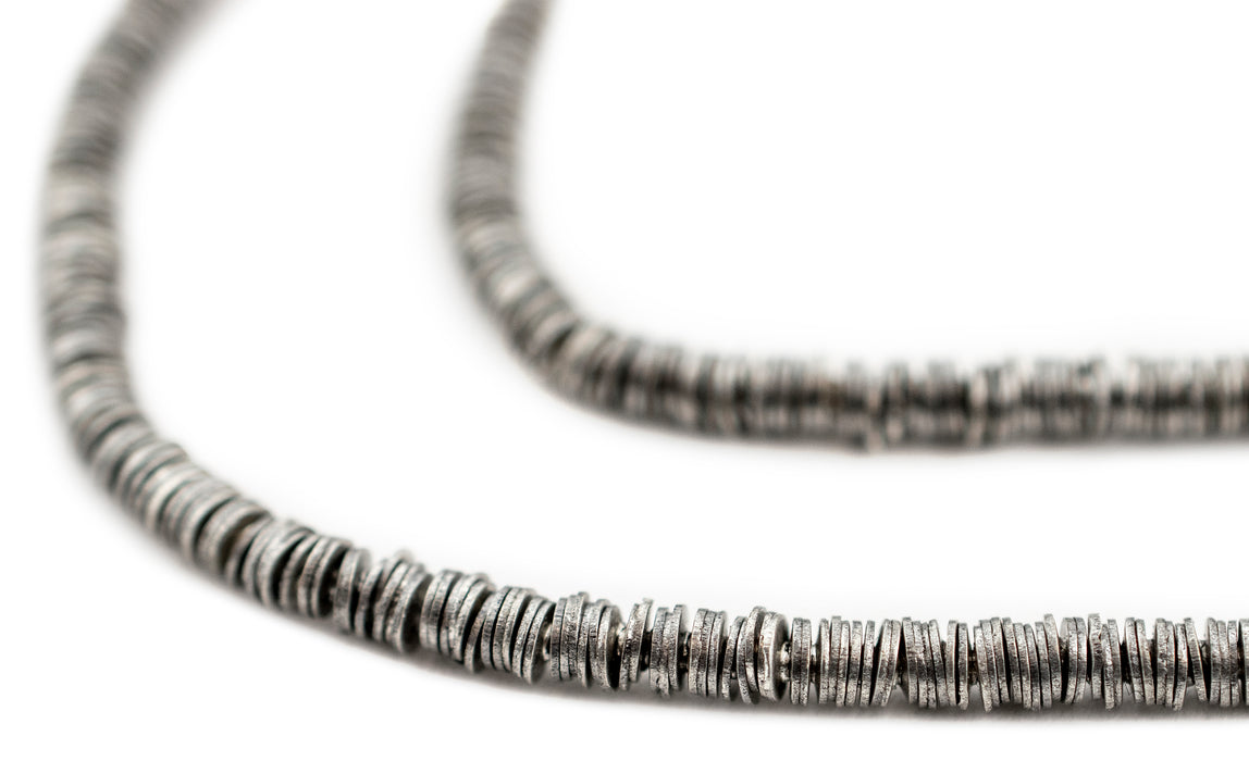 These minimal Antiqued Silver Disk Heishi Beads will make a useful addition to your jewelry design kit. Each bead measures approximately 0.3 x 3mm, with a hole size of approximately 1mm. You will receive one strand measuring approximately 24". There are around 1320 beads on each strand. The flat shape of these beads makes them particularly simple to work with and they can be easily used as a spacer or accent bead in most DIY jewelry design projects. Multiple strands pictured. Each strand is sold individually. Shade of silver may vary from strand to strand. Grab a strand for yourself today.