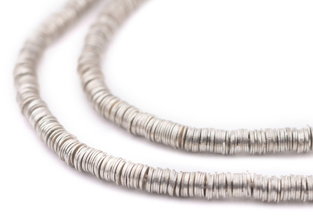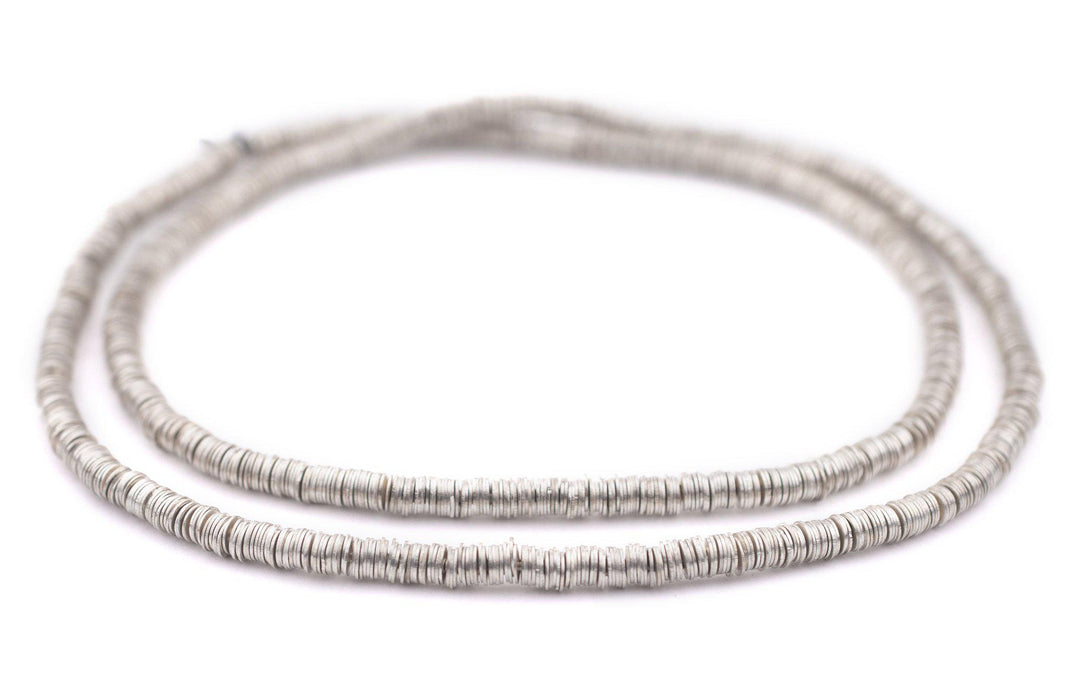 Take a moment to admire these chic silver disk heishi beads. The flat shape of these heishi beads makes them a fun and handy bead to use when creating DIY necklaces and bracelets. Each strand measures about 24" in length. Beads measure approximately 0.5 x 4mm with a roughly 1mm hole. Each strand is sold separately. Grab a strand or two for your beading toolkit today!