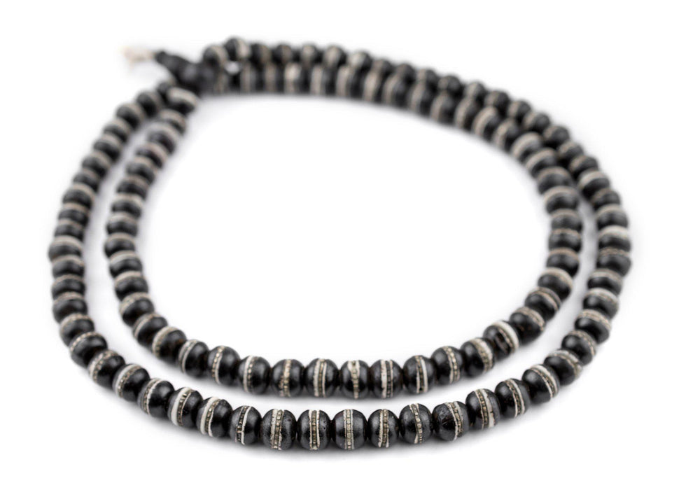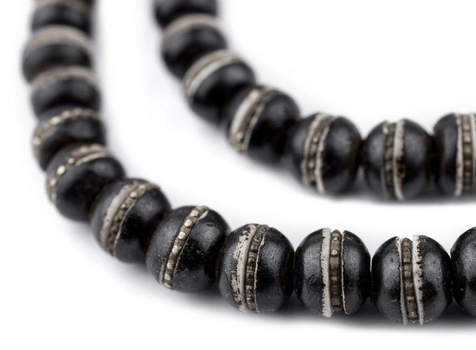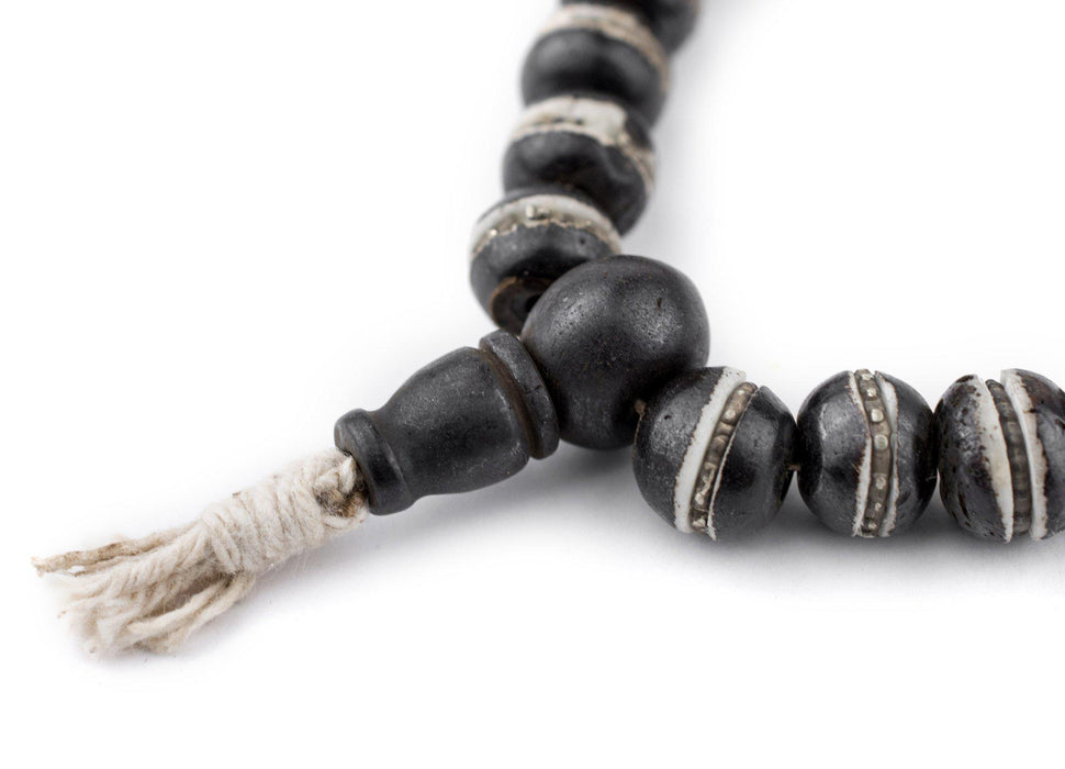Silver-Inlaid Black Bone Mala Beads (10mm)
