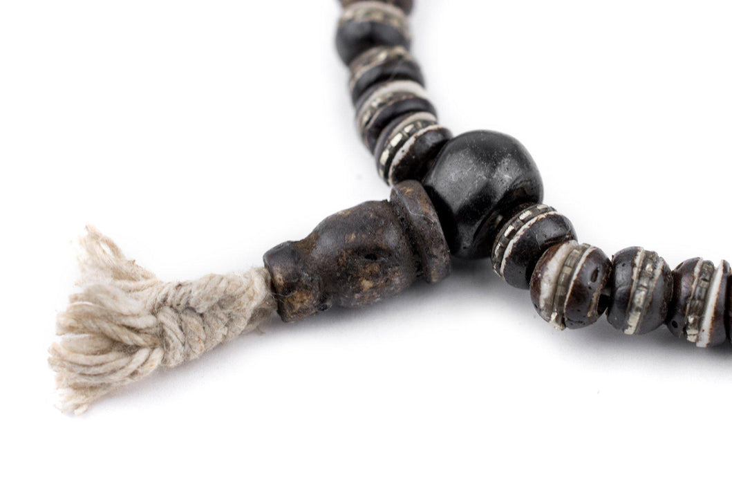 Silver-Inlaid Black Bone Mala Beads (6mm)