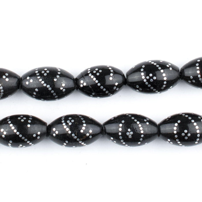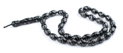 Silver Inlaid Black Coral Oval Arabian Prayer Beads
