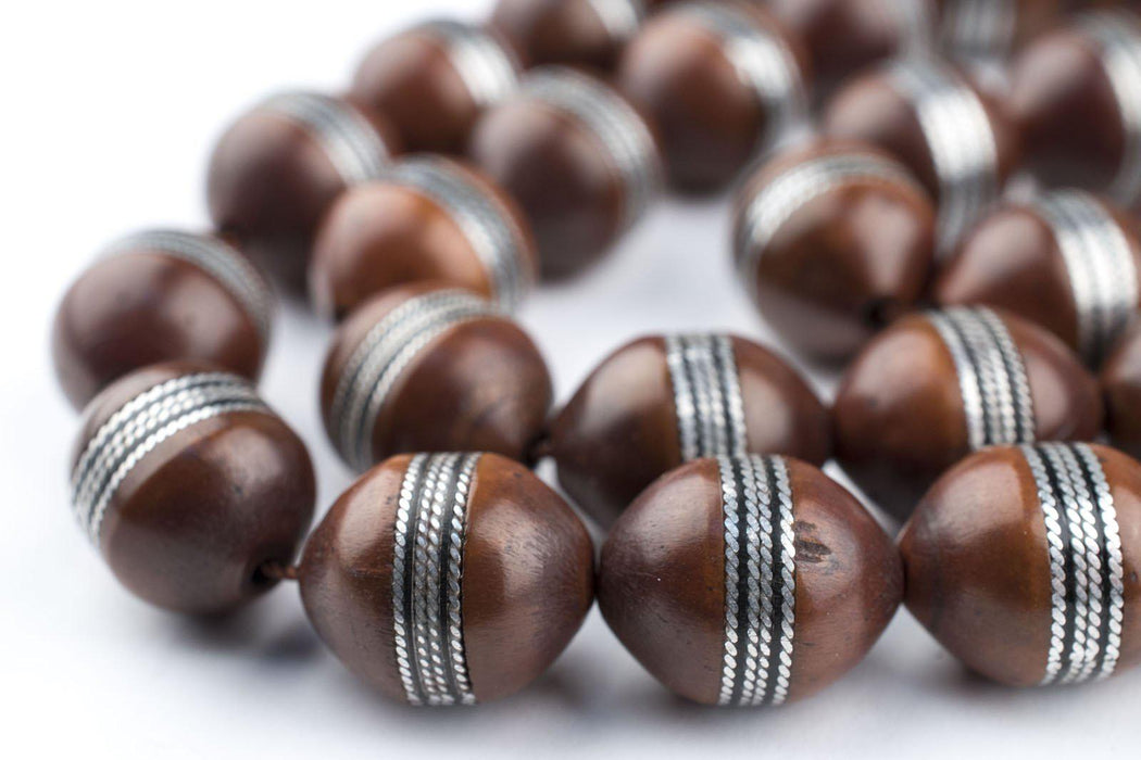 Silver Inlaid Brown Wood Arabian Prayer Beads