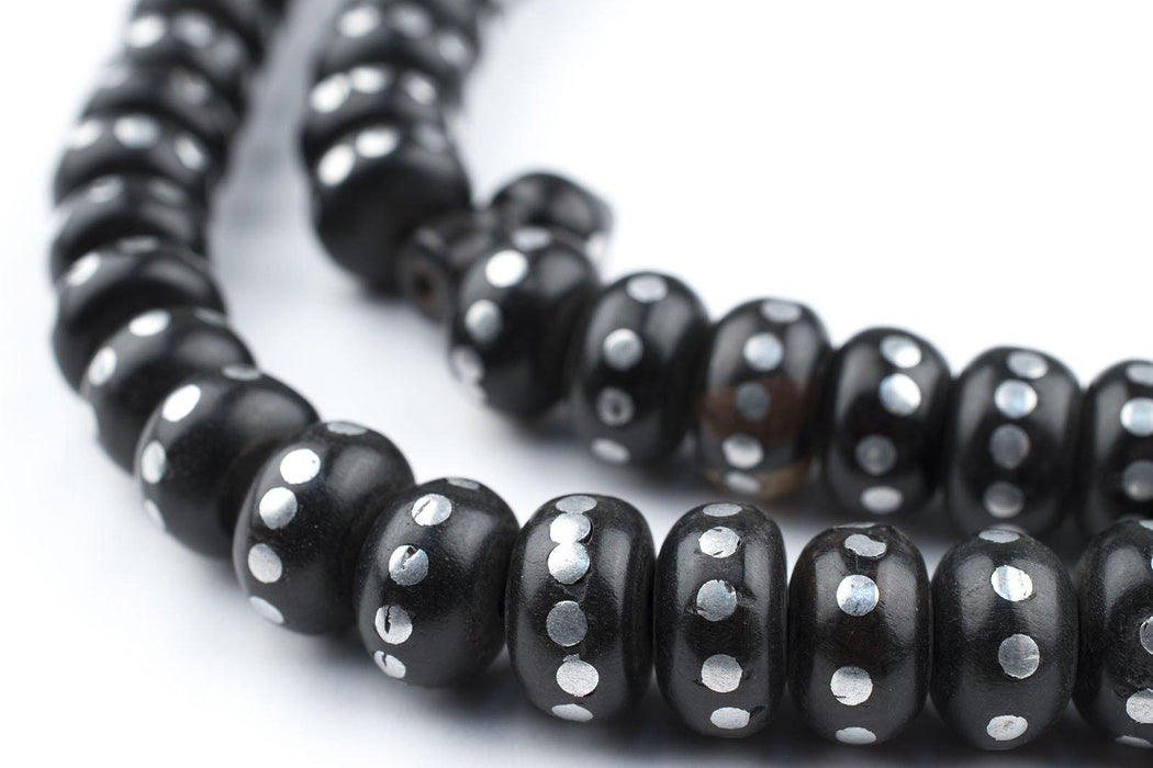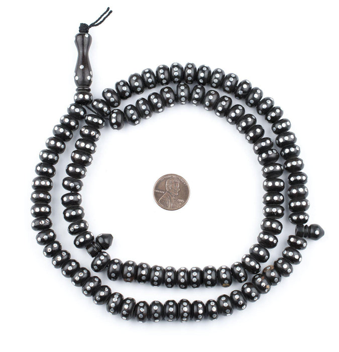 Silver Inlaid Ebony Disk Arabian Prayer Beads (11mm)