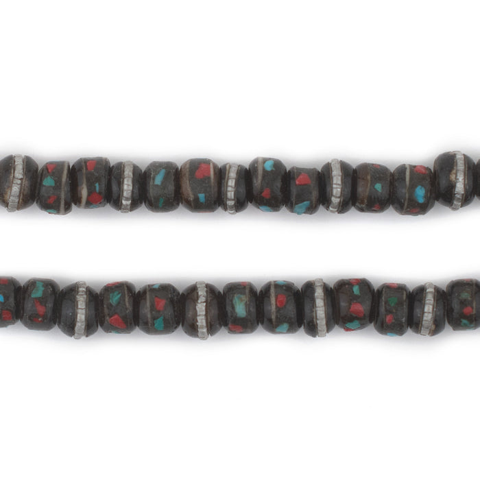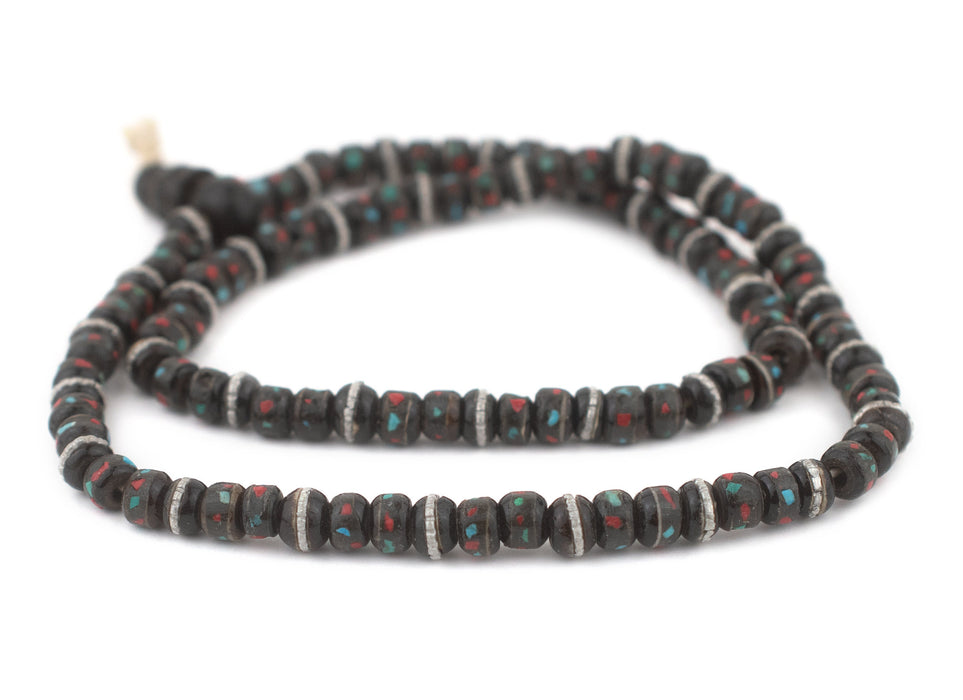 Silver-Inlaid Vintage Yak Bone Prayer Beads (6mm)