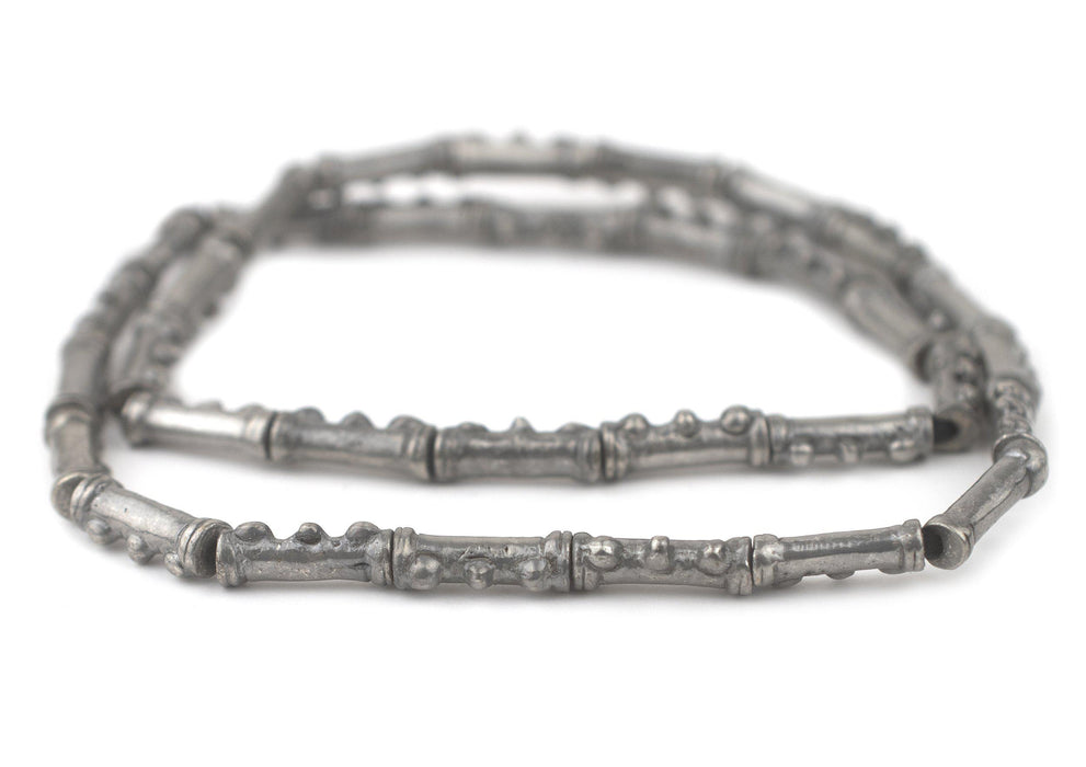 Silver Ivory Coast Baule Tube Beads (19x7mm)