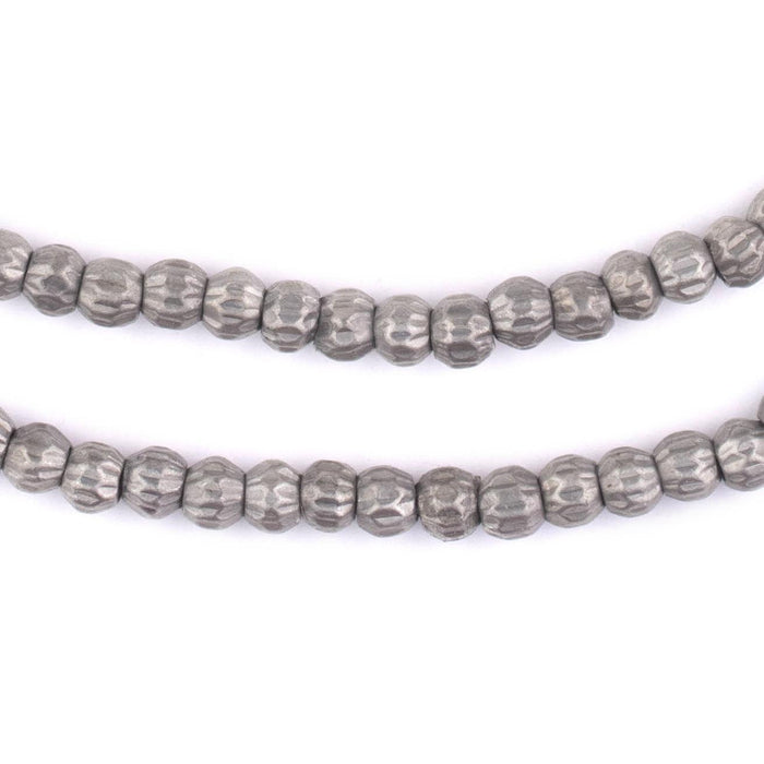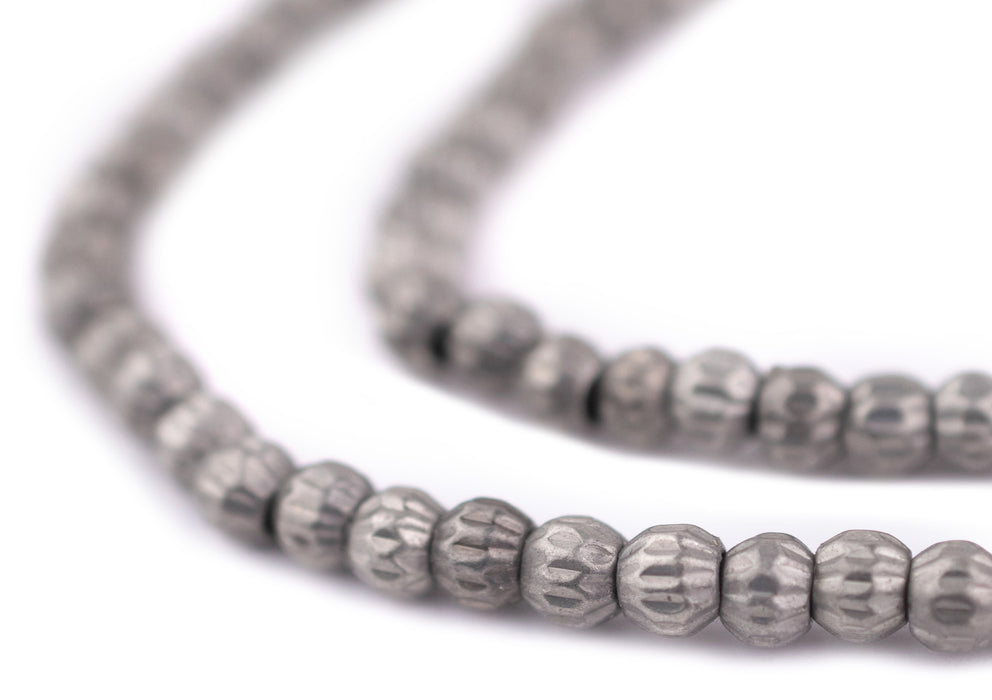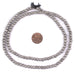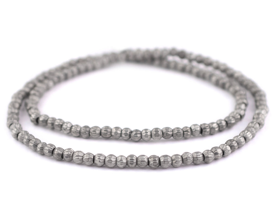 Beautiful strand of high quality, silver beads measuring 24" in length. Individual beads measure 4 x 5mm in size, with holes measuring approximately 1mm. Each strand includes approximately 135 beads. These highly versatile beads make great spacers, or may be used to accent your unique beaded designs. Feel the solid weight of these beads in your hands, and you'll surely appreciate their fine quality.