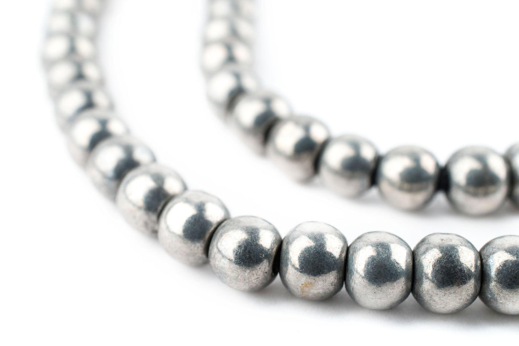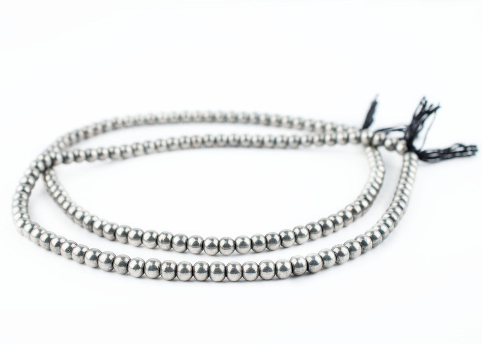 Admire these splendid strands of artisan white metal antique silver colored beads. These versatile spherical beads have many uses and can make for lovely spacers and accents in your jewelry designs. Each strand measures in at approximately 16" in length, with the individual beads measuring in at about 5 x 6mm. The hole on each bead is roughly 2mm in diameter. Multiple strands pictured. Each strand sold individually. Get yours today!