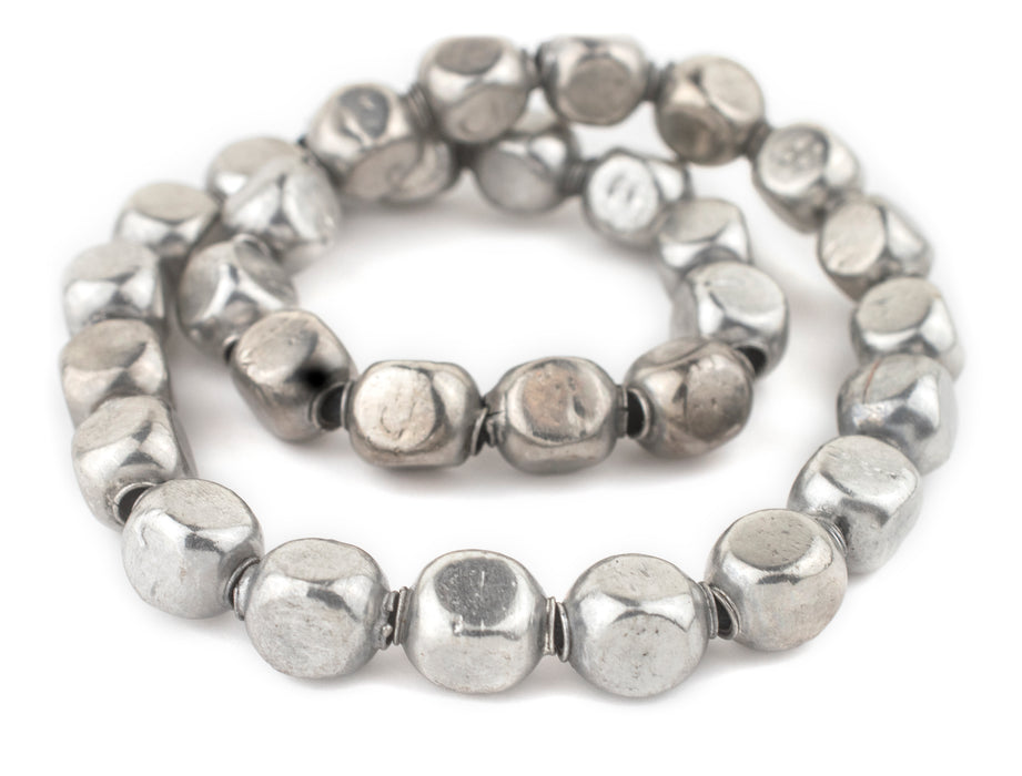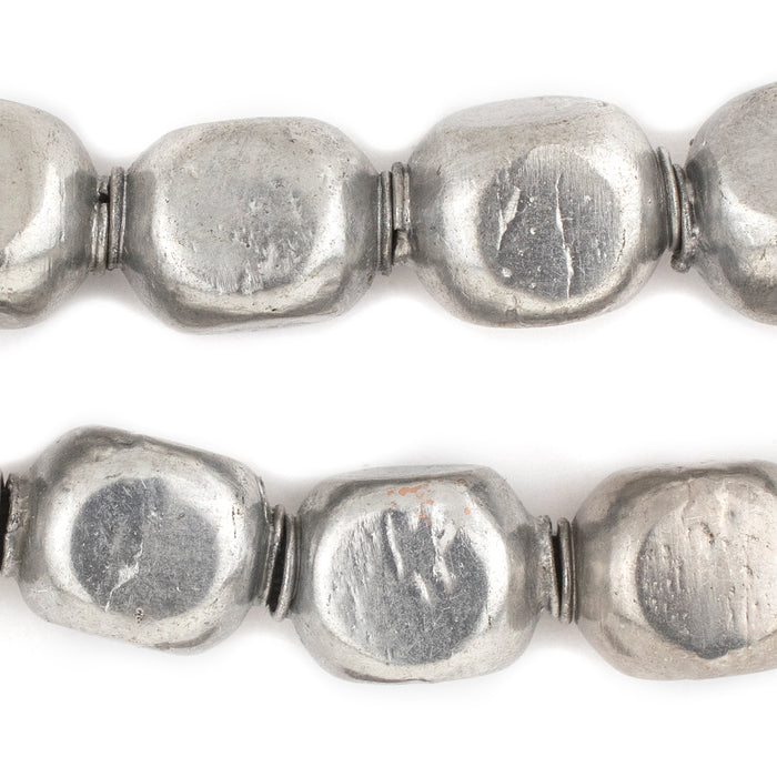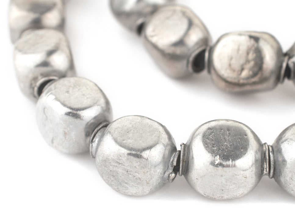 Admire this unusual strand of tribal silver beads. Look carefully to see the high quality of the workmanship, smooth finish, and rustic character. The hollow design of these beads makes them lighter than they look, without compromising quality. Each bead measures approximately 20-22 x 16-19mm with a hole size of approximately 5mm. You will receive a full strand measuring approximately 24", which includes approximately 30 beads.