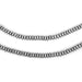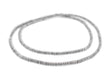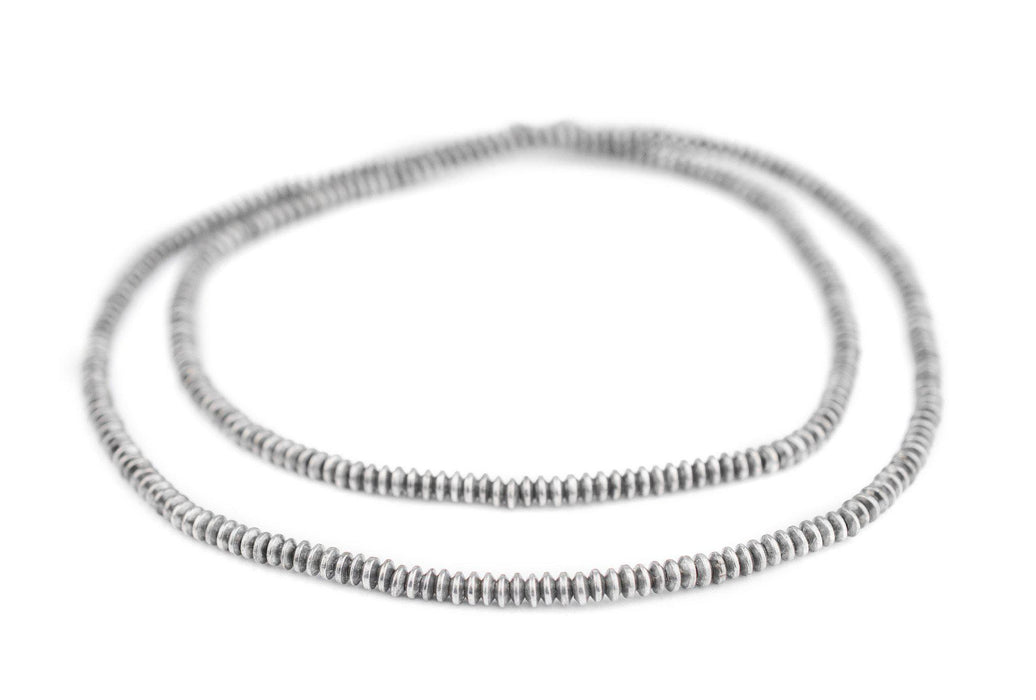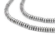 These silver saucer beads are crafted to perfection. Measuring approximately 4mm in diameter, each of these small beads is fashioned in a compressed bicone shape. They work great as spacers in your custom jewelry creations! Each strand measures approximately 24" in length, and the beads have an approximate hole size of 1.5mm. Great value!
