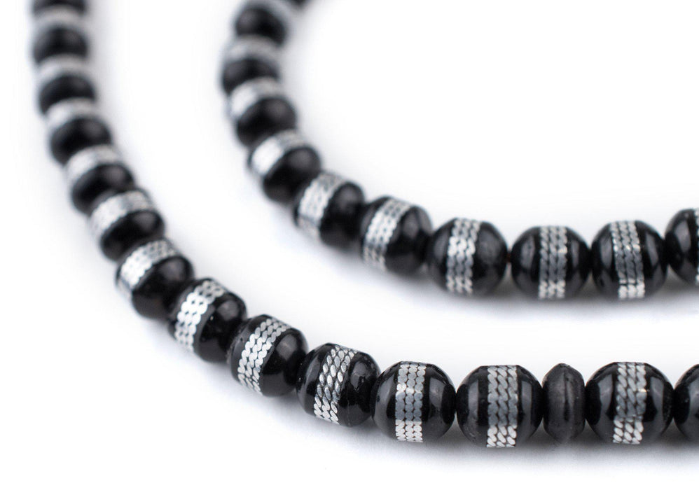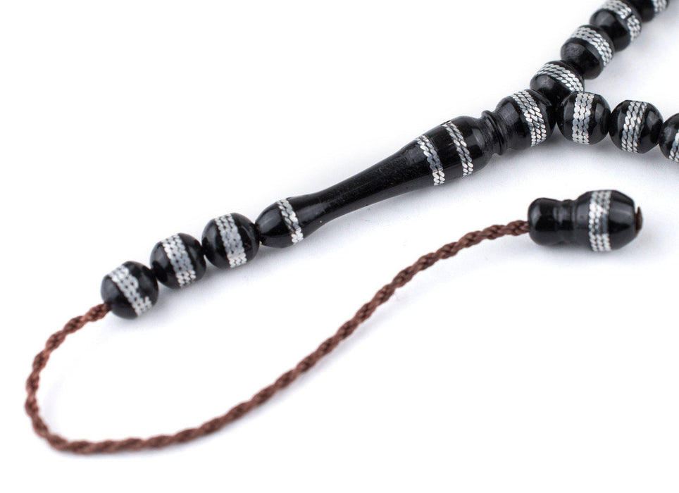 Silver Stripe Inlaid Round Arabian Prayer Beads (6mm)