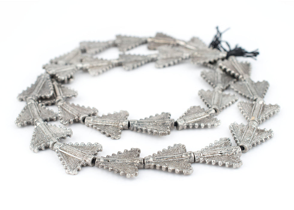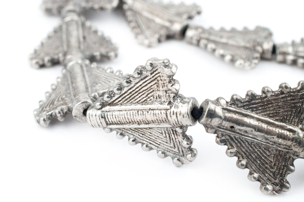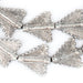 These beautiful white metal beads are hand casted in the design of traditional Baule beads from the Ivory Coast. Increasingly difficult to find, Baule (also known as Baoule) tribal beads are some of the most unique casted beads from West Africa. Each bead measures approximately 27 x 26mm, with a hole size of approximately 2mm. Strand length is 14". We've partnered with a special workshop to bring these unique treasures to you. Pay close attention to the detail and note the high quality finish of these special beads. Multiple strands pictured. Each strand sold individually. Get yours today!