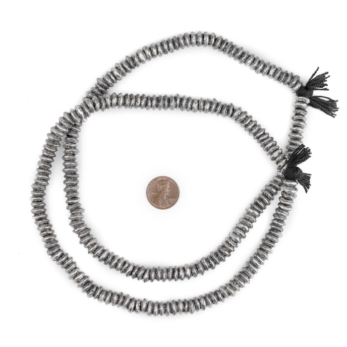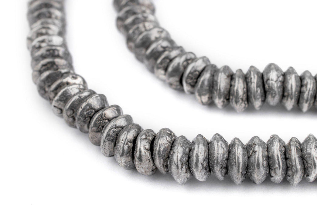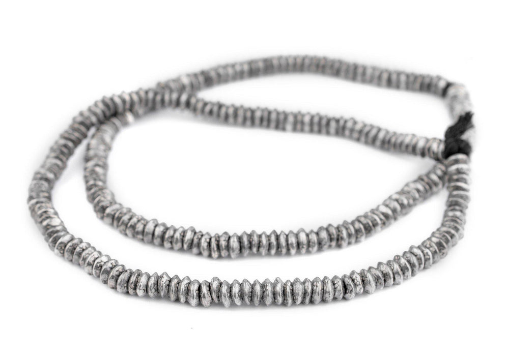 These rustic silver rings have been fashioned in a traditional African design. Each ring has its own character and is unique in shape. Great for your custom jewelry creations. Each ring measures approximately 9mm in diameter, and has a hole size of 5mm. You will receive over 100 rings for each strand you purchase, making this an exceptional value! Multiple strands pictured. Each strand sold individually.
