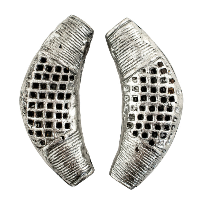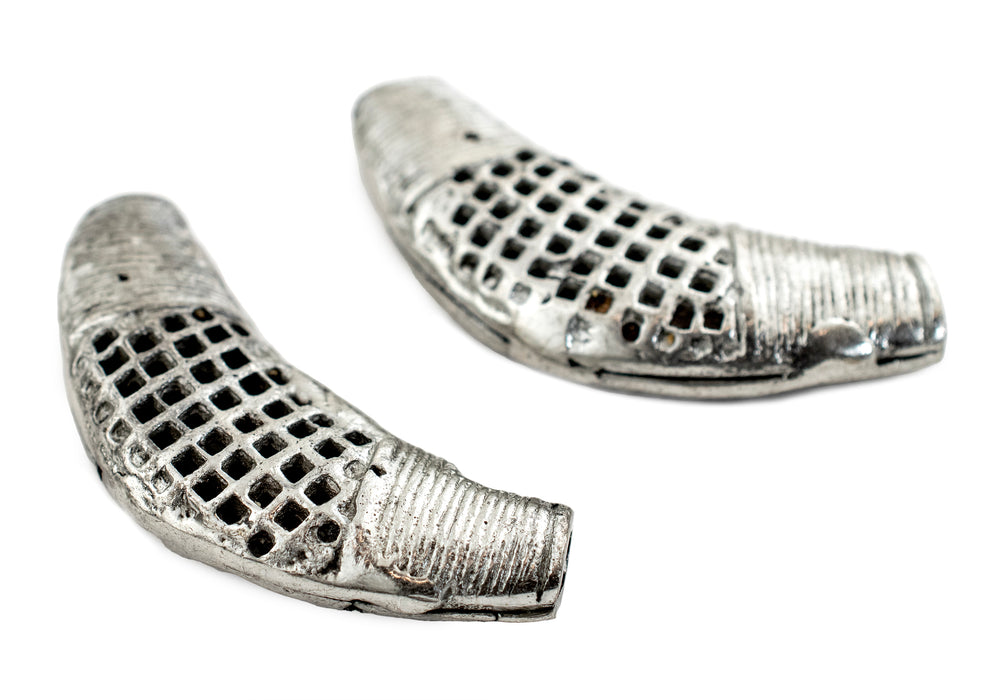 Take a closer look at this intricately crafted silver filigree pendant bead. This particular design originates from the Ashanti people of Ghana, West Africa. The Ashanti are the largest tribe in Ghana and are known for their artisan bead-making skills. This shape is a traditional design that is particular to Ashanti jewelry. Each individual pendant bead measures about 59 x 23mm with a hole size of approximately 3-5mm. You will receive one bead per purchase. Filigree Beads with intricate detail such as these are becoming more hard to find, so grab a few for your bead collection today.