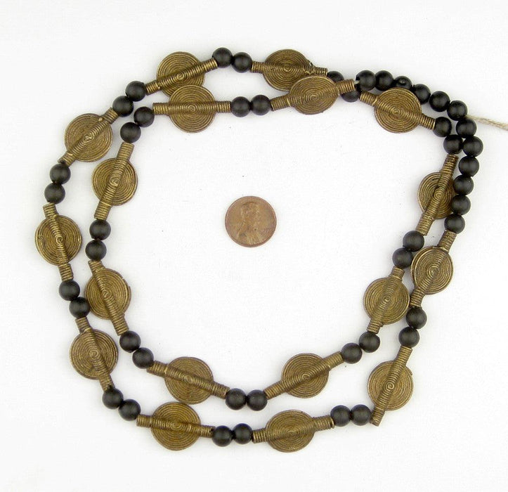 Spectacular strand of African brass Baule beads from the Ivory Coast in West Africa. Beads have been strung with black spacers and may be worn as is or used for beads. Each strand is unique. Individual beads may show minor imperfections as these beads are handmade. Another great strand for your collection!