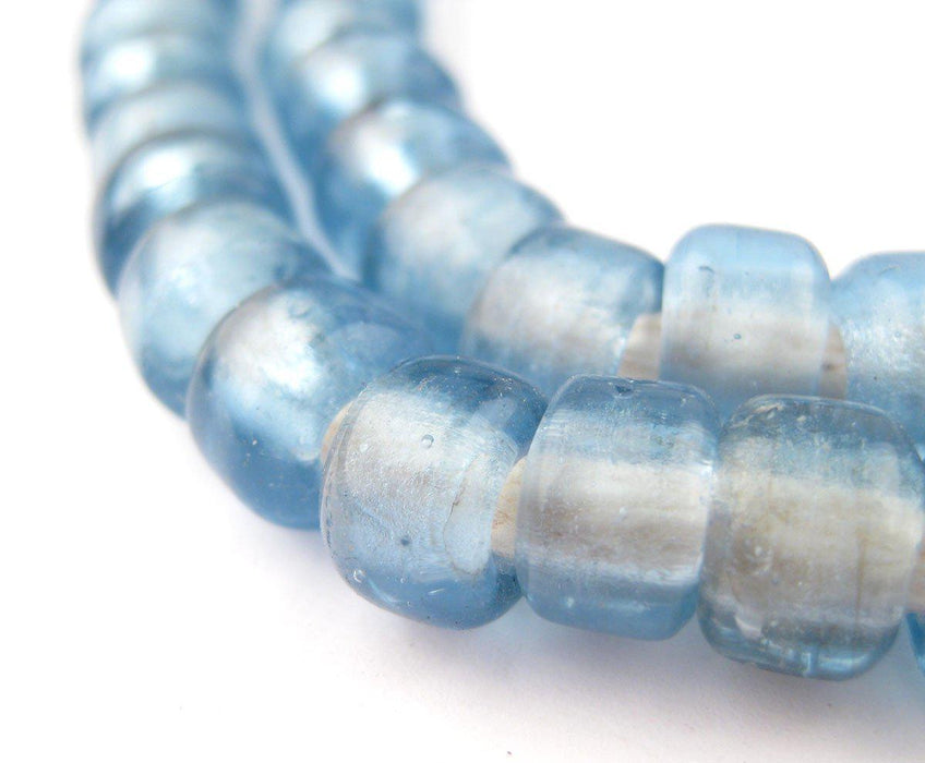 Take a look at these beautiful sky blue padre beads. Made from Czech glass, padre beads such as these have been traded in African since as early as the late 1800 - early 1900's. Individual beads measure approximately 6mm wide and 9mm in diameter. Versatile Beads. Get your strand today!