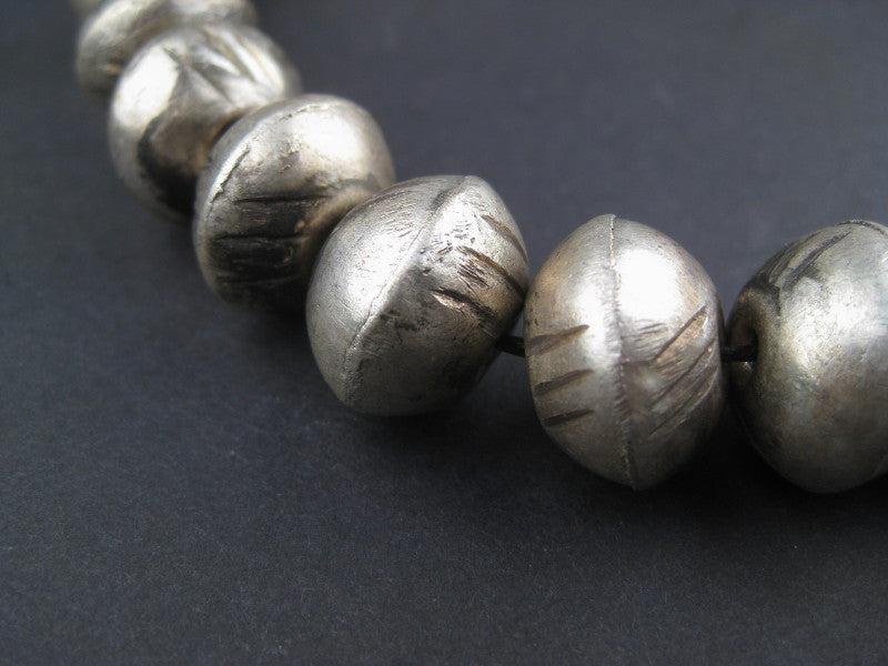 Slant Stripe Ethiopian White Metal Bicone Beads (12x17mm)