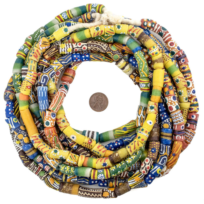 Indulge your eyes in these beautiful turquoise beads brought to you from the mountainous wilds of Afghanistan. Cut from the brilliant blue Turquoise stone, these delightful, handcrafted gemstone beads have been fashioned in a versatile cylinder shape. Each bead measures approximately 2mm wide by 2-3mm diameter, with holes measuring 1mm. Each strand is approximately 15" long. Turquoise stone has been treasured since time immemorial as a protective talisman. Interestingly, it derives its name in the English language from the Turks who were the first to introduce it to the Western World. Add these beads to your collection today! Multiple strands pictured. Each strand sold individually. Strand may vary slightly from photo.