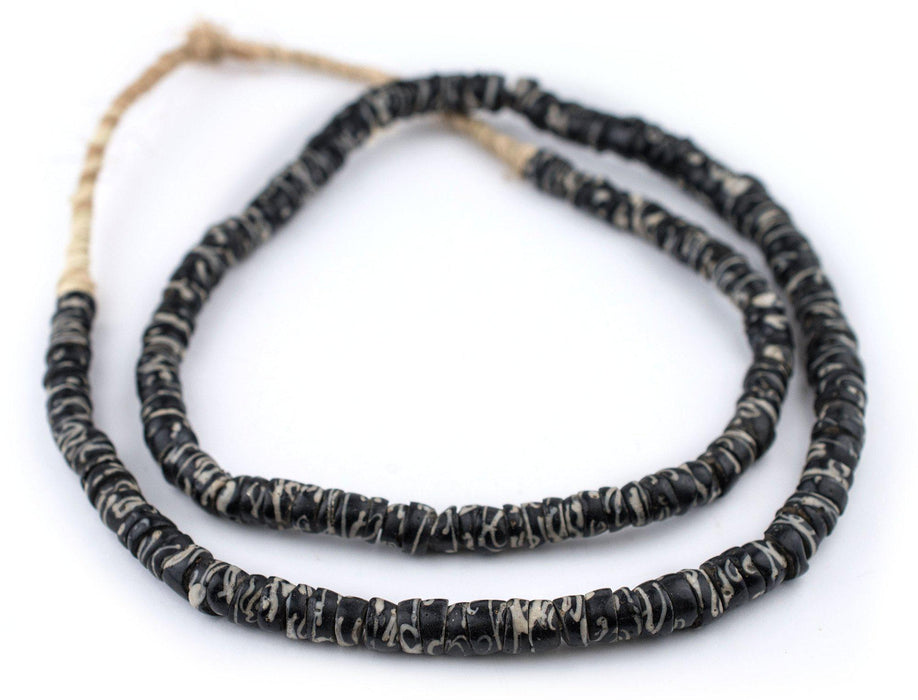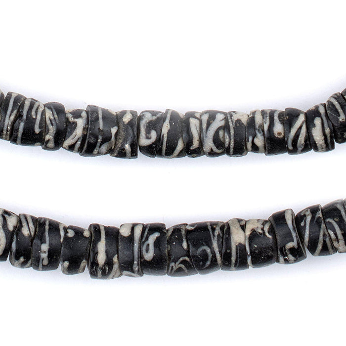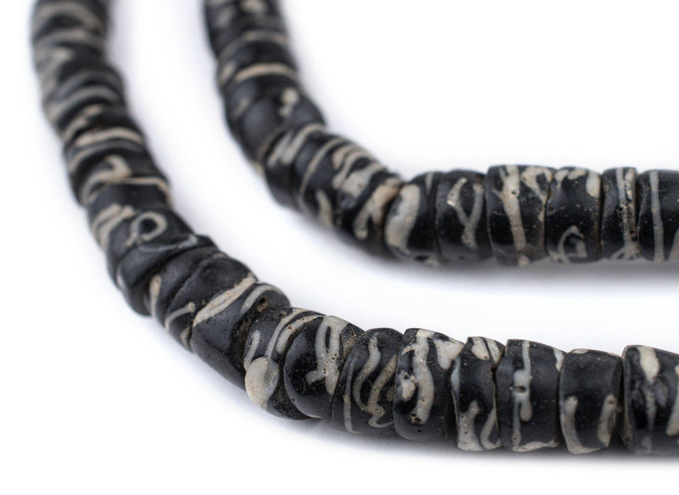 Old Trade beads such as these are as beautiful in their design as they are exceptional in their craftsmanship. Venetian glass beads were known for centuries as the highest quality and the workshops of Venice rose to prominence as the source for many of the iconic beads that are today associated with the African trade. This unusual strand consists almost exclusively of cylindrical beads with a Black & White Pattern. The long strand measures approximately 32" with beads arranged in a graduated fashion. These special beads would be suitable for the collector, bead connoisseur, or discerning designer. Some beads may be cracked or chipped due to age. You will receive the exact strand pictured.