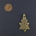 This Ethiopian Star of David is made by the Falasha community of Ethiopia and would make a beautiful necklace...all you have to do is run a chain through it! This artisanal cross is made with brass which is less common than silver designs. The pattern on the back of the cross is similar to what is shown on the front so these pendants are basically double-sided! Small pendants measure APPROXIMATELY 1-1.5'' wide and 1.5-2.5'' in length. Each pendant is unique and may vary slightly from picture.