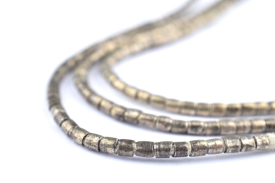 Small Dark Silver Ethiopian Tube Beads (2mm)