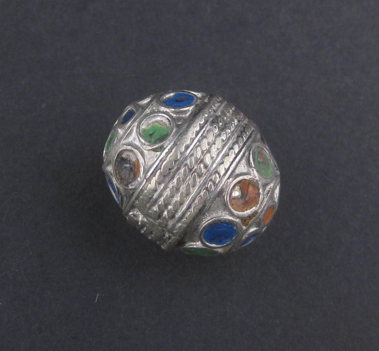 Colorful and eye-catching, this artisanal enameled Berber Bead pendant is unique to behold. Accented with three vibrant colors and silver-plated, it can be worn alone or as part of a special necklace. You will receive beads as a set of 2.