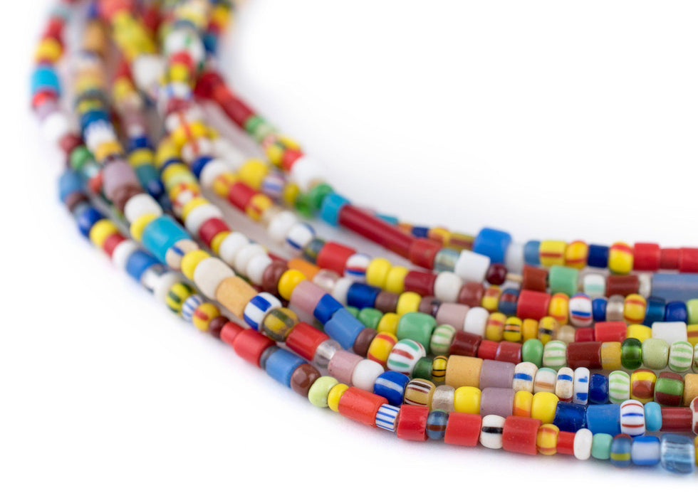 Christmas beads comprise of a special blend of choice beads created in former Czechoslovakia for use in Africa. Also known as "African love beads," each strand is 100% unique; no two strands are alike. Please take note: these beads are authentic vintage production, unlike modern replicas which are widely available in the market today. These fun beads can either be used for your own beaded creations, or worn as is. Traditionally, multiple strands are worn at once. Available in a variety of sizes and styles. Multiple strands pictured. Each strand sold individually. Get yours today!