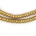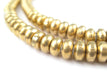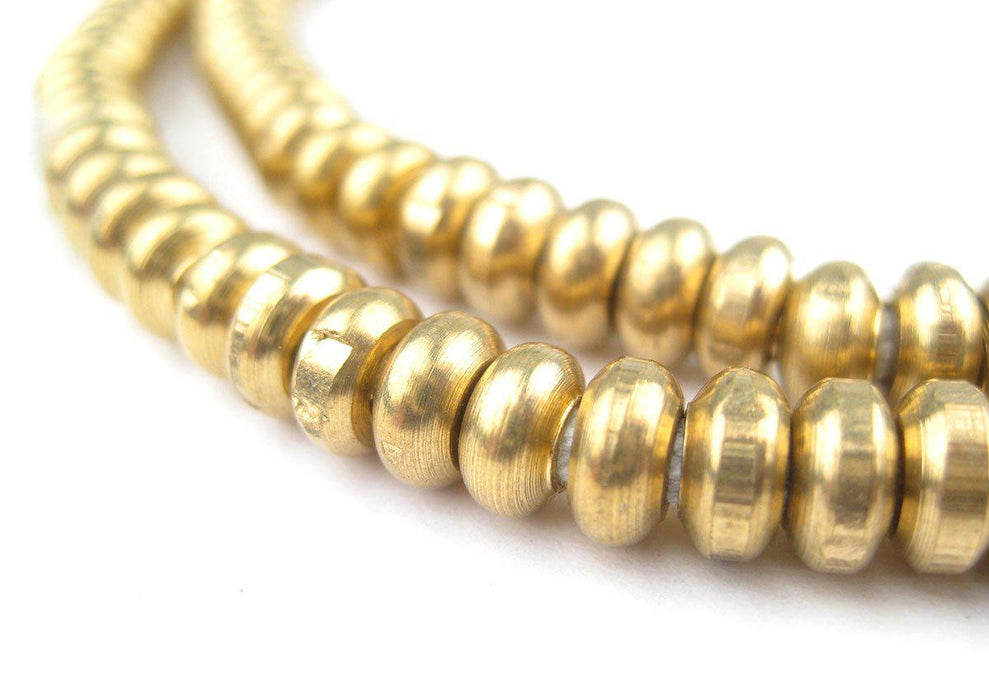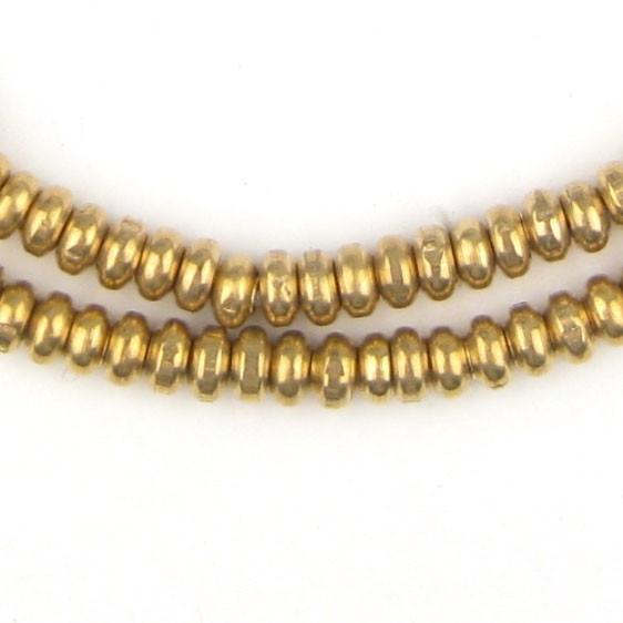 Beautiful strand of high quality, brass rondelle beads measuring 24" in length. Individual beads measure 3x6mm in size, with holes measuring 2-2.5mm in diameter. Each strand includes approximately 200 beads. These highly versatile beads make great spacers, or may be used to accent your unique beaded designs. Feel the solid weight of these beads in your hands, and you'll surely appreciate their fine quality