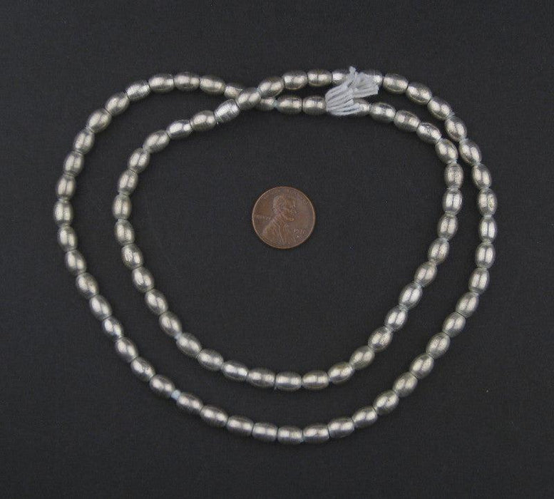 Beautiful strand of high quality, ethnic white metal beads measuring 26" in length. Individual beads measure 7x6mm in size, with holes measuring . Each strand includes approximately 85 beads. These highly versatile beads make great spacers, or may be used to accent your unique beaded designs. Feel the solid weight of these beads in your hands, and you'll surely appreciate their fine quality.
