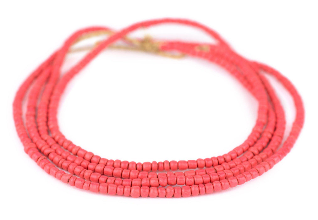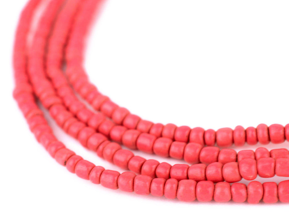 This strand of strawberry pink seed beads comes from Ghana. Each bead measures approximately 2-4 x 4mm with strand length of 26". Some variation in individual beads is shown as pictured. Two strands pictured however each strand is sold individually. Use these as spacers or mix and match colors to express your unique style!