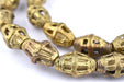 Take a look at these bicone-shaped Ghana Brass Trade Beads from Africa. Each bead is made individually through the "Lost Wax process" technique. This strand is about 26", with beads measuring approximately 13-17 x 10-12mm. Each strand may have 1-2 beads that are less than perfect and may vary slightly from strand pictured.