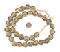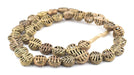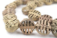Take a look at these flat-shaped Ghana Brass Trade Beads from Africa. Each bead is made individually through the "Lost Wax process" technique. This strand is about 26", with beads measuring approximately 11-13 x 22-23mm. Each strand may have 1-2 beads that are less than perfect and may vary slightly from strand pictured.