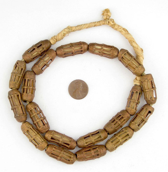 Striped Cylinder Ghana Brass Filigree Beads