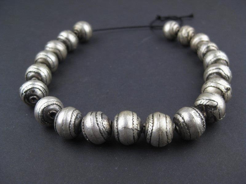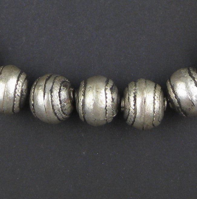 Striped Ethiopian White Metal Round Beads (15x16mm)