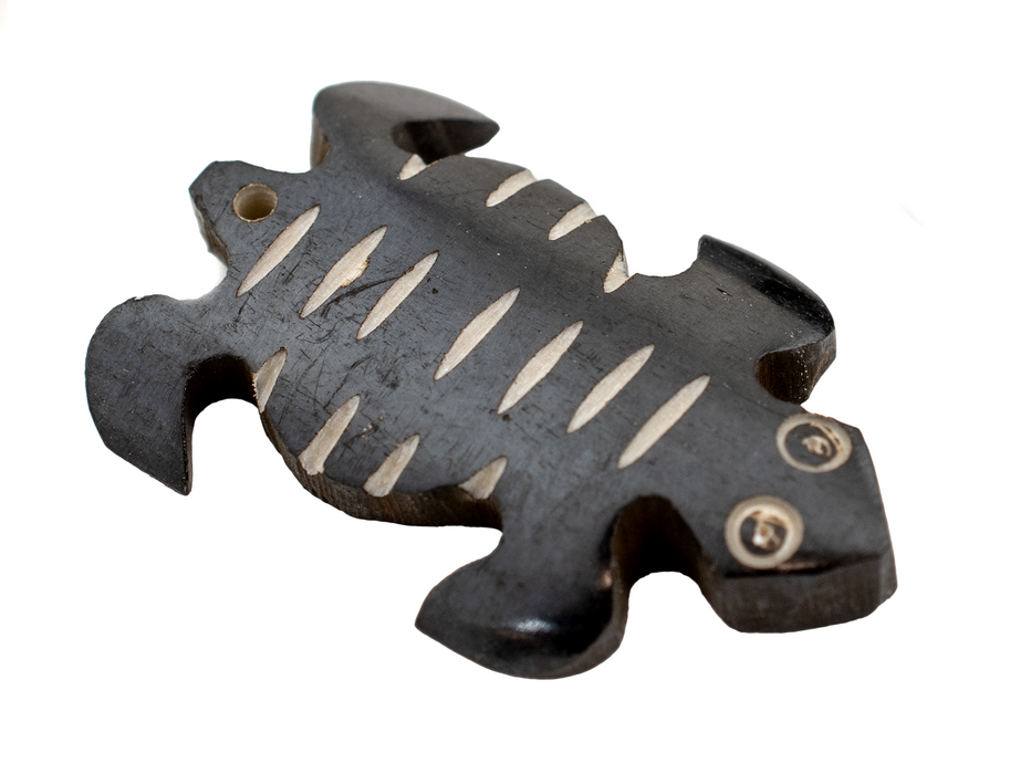 Batik bone animal pendant from Kenya in the shape of a Tortoise. Each pendant measures 40mm long by 24mm wide. There may be some slight variation between each pendant. Please let us know in advance if you have specific size requirements.