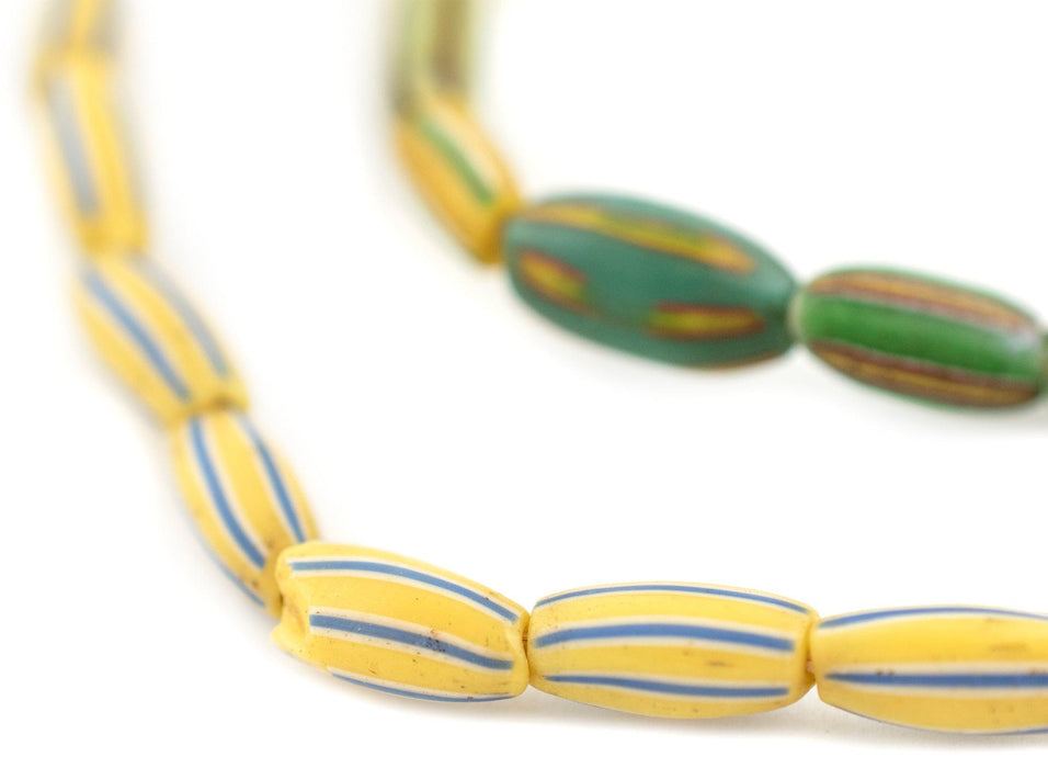 Checkout these beautiful Venetian trade beads, known as watermelon chevron. Similar to the commonly known Chevrons, they display a colorful set of stripes on each bead. The strand measures approximately 24", and each bead measures approximately 6-16 x 5-9mm. Due to age, some beads may be chipped or damaged. Some beads may be more flat while others may be more oval.