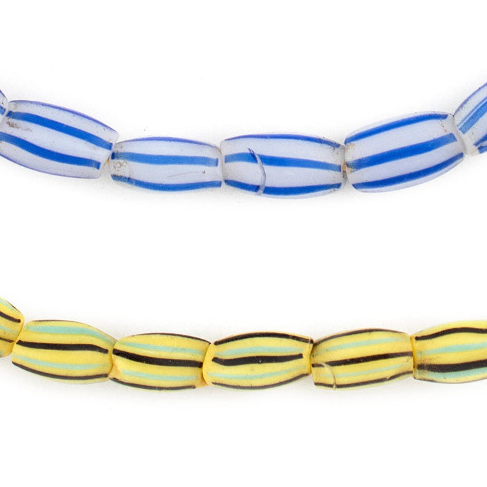Checkout these beautiful Venetian trade beads, known as watermelon chevron. Similar to the commonly known Chevrons, they display a colorful set of stripes on each bead. The strand measures approximately 24", and each bead measures approximately 6-16 x 5-9mm. Due to age, some beads may be chipped or damaged. Some beads may be more flat while others may be more oval.