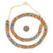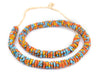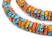This uniquely patterned strand of rondelle beads is made using traditional methods used to create powder glass beads. The procedure for making the beads consists of a number of steps whereby powdered glass is poured into molds of clay and baked in a specialized oven. Individual beads measure 4 x 11mm and have a hole size of approximately 2mm.