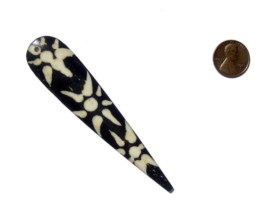 Batik bone feather pendant from Kenya. Each pendant measures 100mm long by 22mm wide. There may be some slight variation between each pendant.