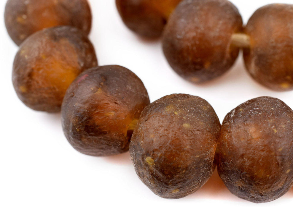Super Jumbo Amber Recycled Glass Beads (35mm)