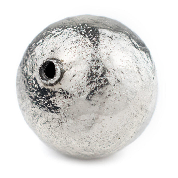 This beautiful silver bead is handcrafted in the highest of quality. Made using durable metal, its thick outer layer and hollow center make it a great center-piece bead for any necklace or ornamental design. Reminiscent of East African metals, this style will surely add some character to your next project! Each bead measures approximately 47 x 46mm with a hole size of approximately 5mm. You will receive one bead per purchase. Get yours today!