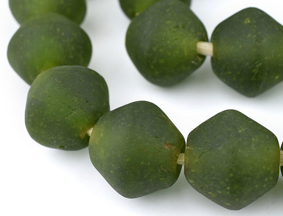 Super Jumbo Lime Green Bicone Recycled Glass Beads (35mm)