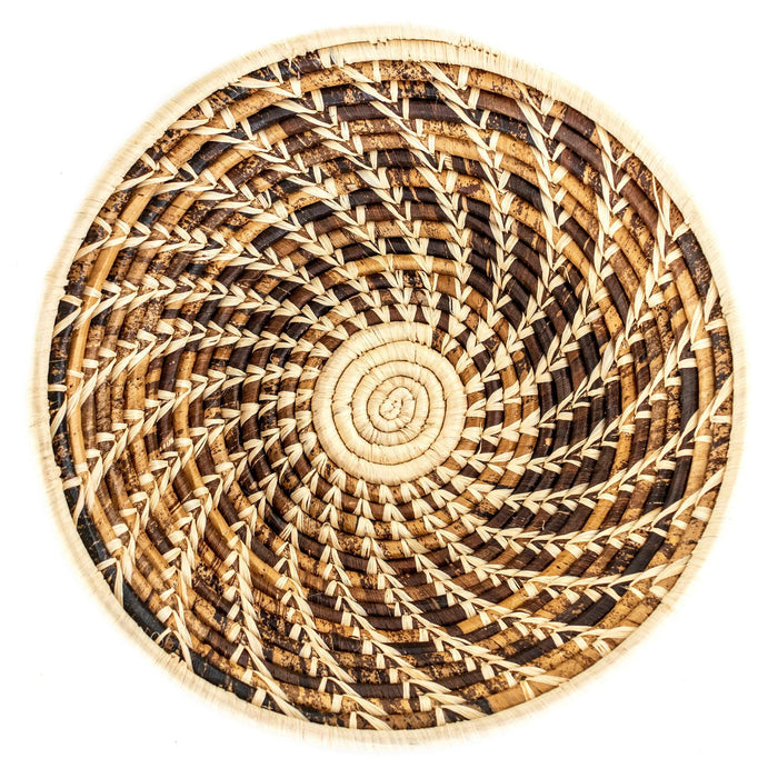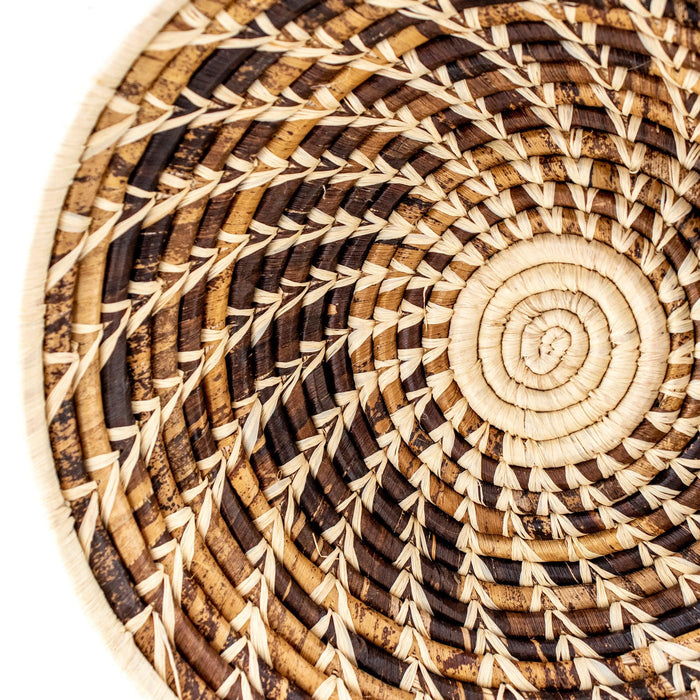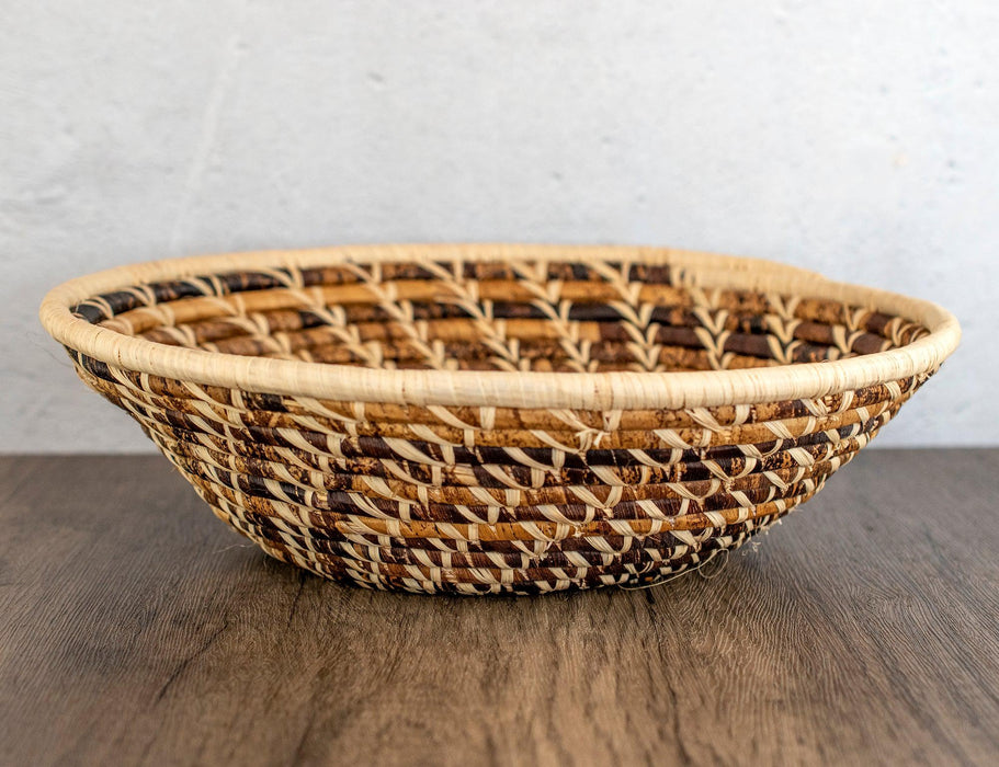 Take a look at this lovely woven basket. Woven out of Napier grass, also commonly referred to as Elephant grass, the material for these beautiful baskets is plentiful and fast growing, making basket-weaving an easy tradition for local craftspeople. Each Ugandan basket we sell is handcrafted by a talented artisan, and dyed in elegant designs. These baskets are great as home decor items. Each basket measures approximately 12 to 14 inches in diameter. Every basket is unique and may vary slightly from the photo. Add this unique piece to your home today!