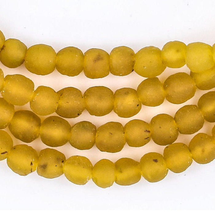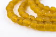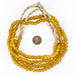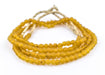 Recycled glass beads are a type of indigenously produced African bead from Ghana West Africa. These beautiful orange color recycled beads are made using an old method that has been used for centuries. The glass itself is derived from a variety of recycled sources including old beverage and medicine bottles. The procedure for making the beads consists of a number of steps whereby powdered glass is poured into molds of clay and baked in a specialized oven. These beads are produced in large part by the Krobo tribe and through recycling glass are environmentally friendly. Multiple strands pictured. Each strand is sold individually.