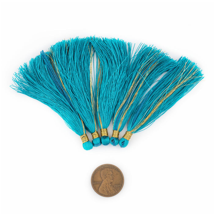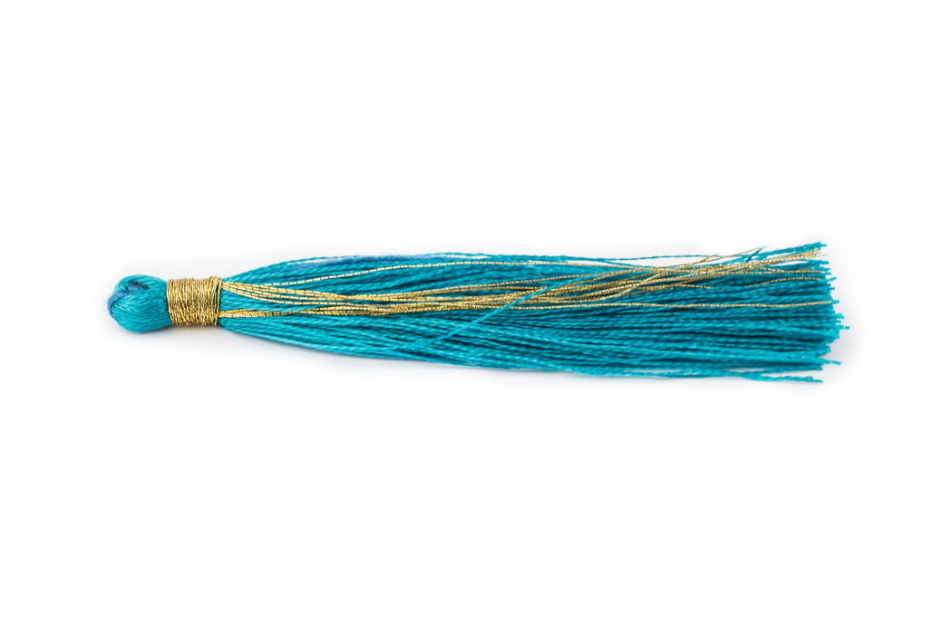 Look no further! These genuine silk tassels have been individually handmade by an expert of the craft. They are crafted from authentic Indian silk which is highly refined and world renown. Specially made for The Bead Chest, each high quality tassel is wrapped with a gold thread. Available in 20+ fun colors and 4 different sizes, you’ll find in our collection a tassel for almost every need. Each purchase of these green tassels will ship as a pack of five pieces. Individual tassels measure approximately 6 centimeters (2.4 inches) in length. May be used in jewelry designs, home decor, and art projects galore. Mix and match your favorite styles today!