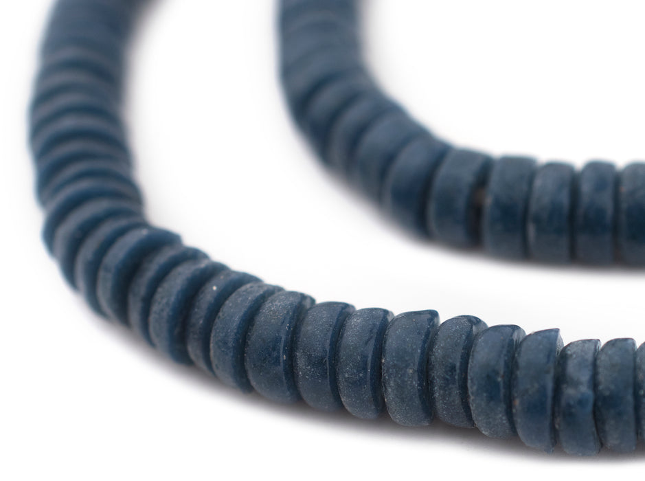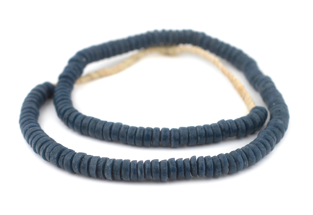 Checkout this beautiful strand of Ashanti glass disk beads. The process of making these beads is unique to Africa and has been used for over 1000 years. Pulverized glass of various colors is poured into a clay mold, using a cassava stem for the bead's hole. The mold is placed in a furnace and heated until the glass particles congeal without actually melting and the stem burns out. The Ghanaians have been making beads in this manner since the 1600s. Each bead measures approximately 4 x 10mm with a hole size of approximately 2-3mm. You will receive a full strand measuring approximately 28". Available in many colors.