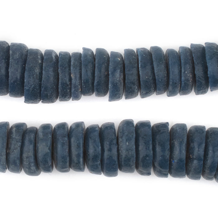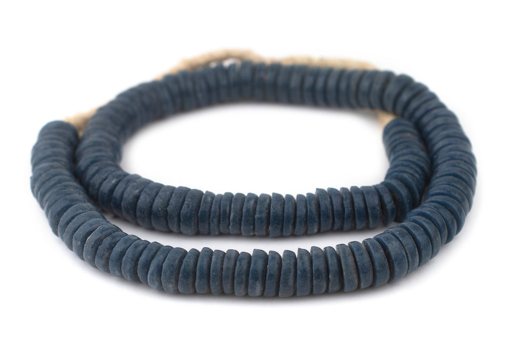 Checkout this beautiful strand of Ashanti glass saucer beads. The process of making these beads is unique to Africa and has been used for over 1000 years. Pulverized glass of various colors is poured into a clay mold, using a cassava stem for the bead's hole. The mold is placed in a furnace and heated until the glass particles congeal without actually melting and the stem burns out. The Ghanaians have been making beads in this manner since the 1600s. Each bead measures approximately 3-4 x 14mm with a hole size of approximately 3mm. You will receive a full strand measuring approximately 28". Available in many colors.